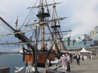 No sooner did I write about how my first day in Sydney seemed like LA weather than that quickly changed yesterday and today. It started out fine, some clouds, some sun, as I had planned to go back to Darling Harbour and tour some of the ships, including the replica of The Endeavour, the ship that Captain James Cook sailed on when he claimed the eastern part of Australia for Great Britain. Some city shots along the way: