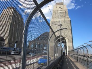 My walking journey continued up the stairs to the Sydney Harbour Bridge and across to Milson’s Point.  One side of the bridge is for cyclists, the other for pedestrians and joggers.  And there are a lot of joggers.  The famous landmark in Milson’s Point is Luna Park, an amusement park opened in 1935.  It wasn’t open at the time but still cool to see close up.  And then, the long journey back.