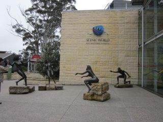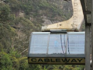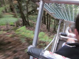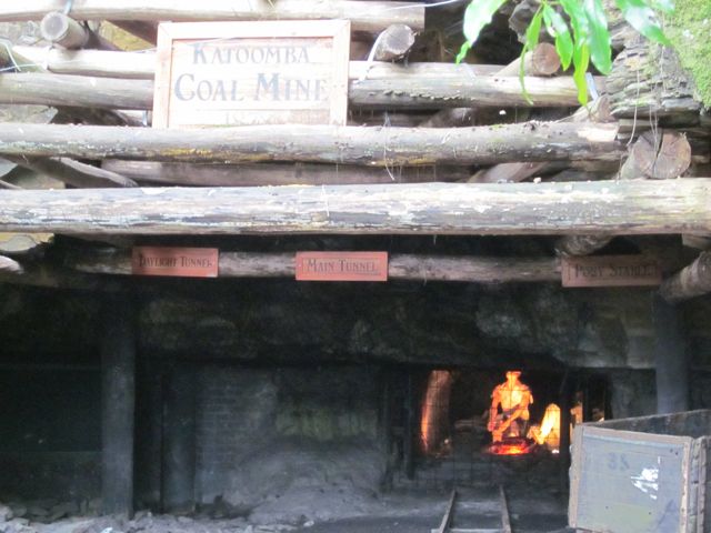 After lunch, it was on to tour the Blue Mountains. There was a lot of fog at the first stop, so our guide Michael made a detour off the beaten path for a better view. Then it was on to Scenic World where you could either take a rail car and/or tram up and back. Or walk 1000 steps up and down. Uh, rail car down and tram up. The rail car was a really weird seating arrangement. You sat in and down with a cage over the top of you. The cage sloped down over the right hand seat and I would have had to duck to not hit it. Suddenly, it speeds down the hillside through a dark tunnel. Good thing for the cage because you really need to hold on to something. It was lots of fun but a bit disorienting. Once down the mountainside, you were in a 4-season rain forest with a boardwalk that explains the history of the area, especially for its coal mining.
