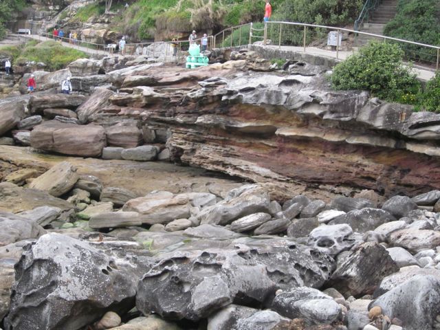 Haven’t posted in a few days. Need to catch up. I had to spend a good day at one of the iconic beaches – Bondi Beach. If you’ve ever seen movie scenes or pictures of the quintessential Australian beach, this is it. It was a bit chilly for beach weather but that doesn’t stop the hearty and crazy. The area could use some sprucing up, although that is part of its charm and you can walk along the beach and cliffside to some of the other beaches. A special “Sculpture By the Sea” exhibit was showing with various sculptures planted along the walk. I didn’t make it all the way to Bronte Beach, which was my goal, as the rains came. Not hard but steady enough.