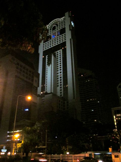 And to cap off the evening, I went to the rooftop bar of the Banyan Tree Hotel, 61 stories high.  It’s an outdoor rooftop restaurant and bar where you look out the night sky at all of Bangkok.  Beer not cheap but you can’t beat the experience.  Once I found it.
