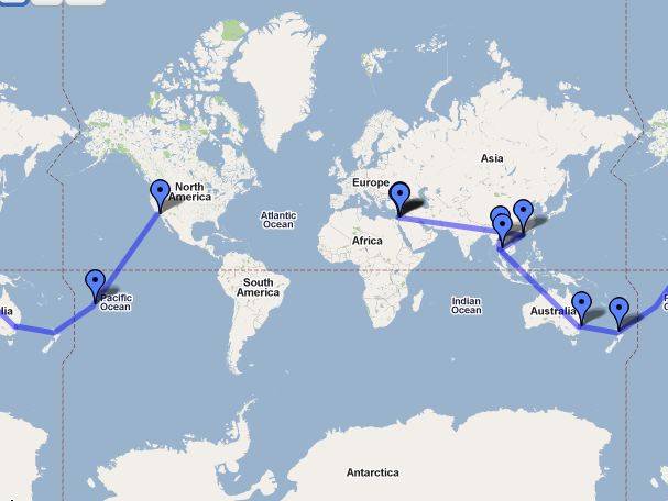 Journey to the Minute Arrived in Tel Aviv. Here’s the updated map: Boy, am I glad I spent the extra money for business class. Hong Kong to Bangkok to Amman to Tel Aviv. Lots of time at the airports. Lots of time taking advantage of the biz class lounges! Share this: Click to share on X (Opens in new window) X Click to share on Facebook (Opens in new window) Facebook Like Loading... Related Leave a comment Cancel reply Δ