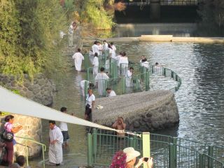 Then it was on to the final stop, the Yardenit on the Jordan river, where Jesus was baptized. Pilgrims come the world over to be baptized in the river. The river is beautiful, crisp and clear, with a bluish tint to the water. Then it was back through the Jordan Valley along the West Bank where you could see small Jordan villages in the distance.