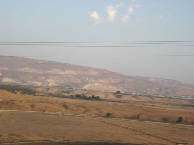 Then it was on to the final stop, the Yardenit on the Jordan river, where Jesus was baptized. Pilgrims come the world over to be baptized in the river. The river is beautiful, crisp and clear, with a bluish tint to the water. Then it was back through the Jordan Valley along the West Bank where you could see small Jordan villages in the distance.