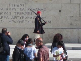 The main area, and central to most tourist spots, is Syntagma Square. This is a large area of the city with lots of shopping, cafés, and government buildings. It is probably one of the nicest areas of Athens (see? I can say good things about it). It is also the starting point of the two competing “hop-on, hop-off” bus tours. I highly recommend this because not only is it a good way to get to the key destinations, it is a way of avoiding the jam-packed metro. Also, because they are competing side by side, just say you are going to be in town for three days (if you are) and they will validate your ticket for that long, even though it is only supposed to be for 24 hours. I definitely got my 18 euros worth from this.
