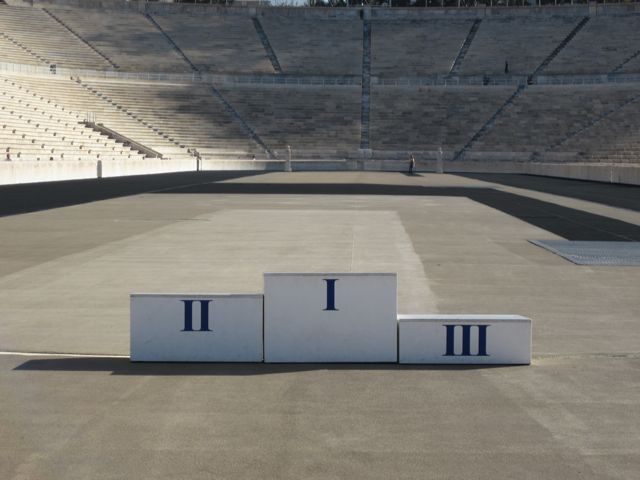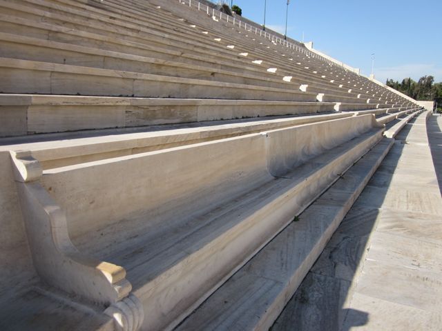 The Olympic Games. It conjures up heroic images and awe-inspiring competition on a world stage. As we know, the modern games began in Athens in 1896 and the Panathenaic Stadium was built for it. It is believed to be on the same grounds as the ancient stadium of the Olympics of long ago. For three euros, you can tour the stadium with an audio guide – well worth it. The stands and benches are carved from white marble and the track is an ancient configuration with longer dimension and shorter curves. The stadium was refurbished for the 2004 Olympics.